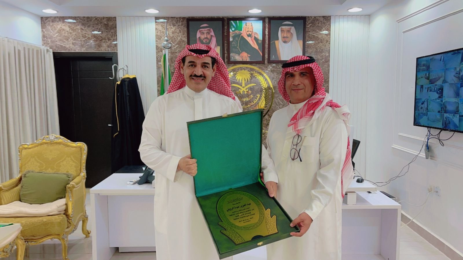 سعادة محافظ طريف الاستاذ /بدر بن نجر الصقر يكرم ممثل فرع هيئة الصحفيين السعوديين بمنطقة الحدود الشمالية بمحافظة طريف