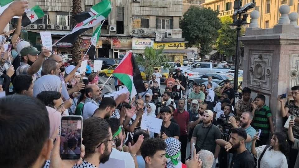 في التفاصيل أقامت الفعاليات السورية والفلسطينية، هذه المسيرة رفضاً للتطبيع مع الاحتلال الإسرائيلي، وتضامناً مع أحرار العالم على متن أسطول الصمود الذي تعرّض للعدوان خلال توجهه لكسر الحصار عن غزة.