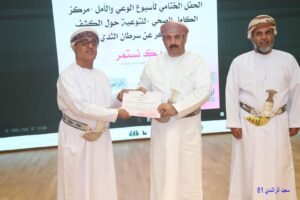 بحضور مدبر عام صحة جنوب الشرقية والمدعوين من أعيان ورشداء وشيوخ الولاية وخارجها واصحاب المصالح الحكومية والخاصة بالولاية تناولت الحفل محاضرات وتوعيات مهمة جدا وأوراق عمل رائعة ومميزة جدا في الختام قام راعي الحفل بتكريم الداعمين والمشاركين والمنظمين والاعلاميين وجميع المشاركين