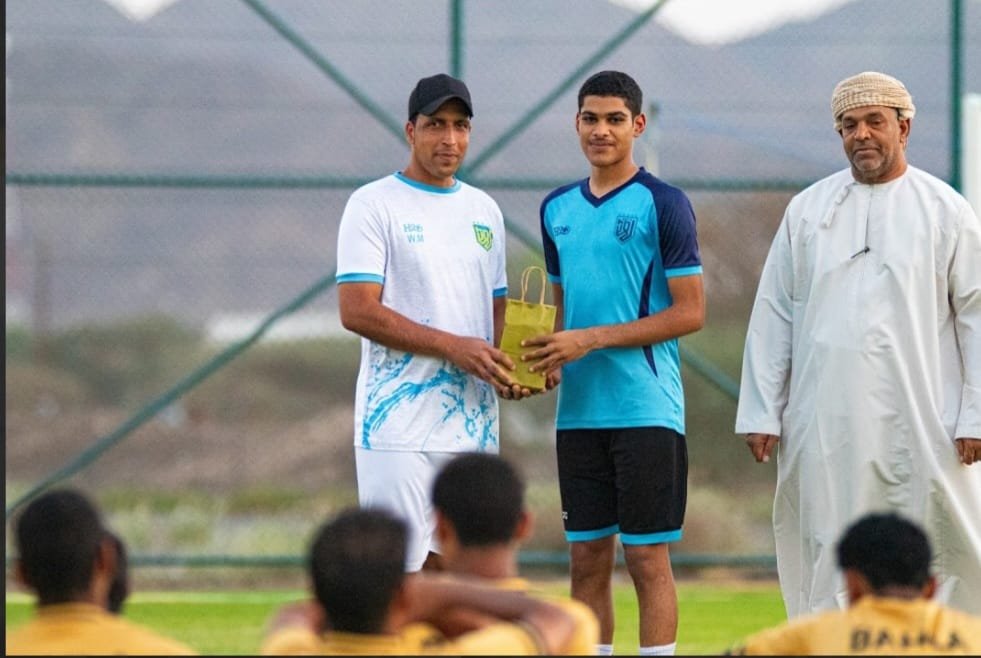 الجهاز الإداري والفني لفريق بهلاء للناشئين يكرم اللاعب بشار الغافري لمشاركته مع منتخب الناشئين في البطولة الخليجية بالدوحة