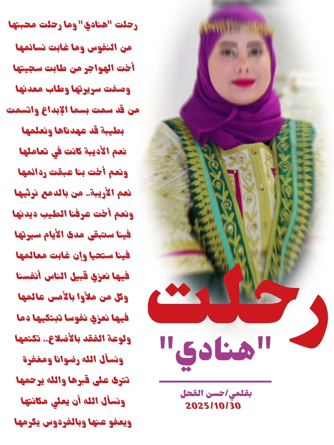 رثاء في فقيدت الأدب والنقاء الأستاذه/ هنادي الهاجري