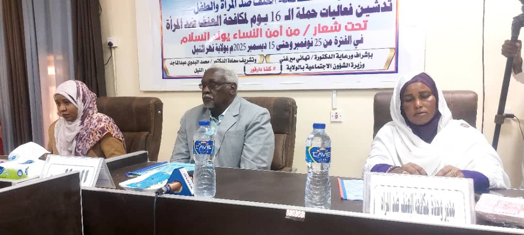 حيا الدكتور محمد البدوي عبدالماجد ابوقرون والي نهر حيا الدور الكبير للمراة في المجتمع جاء ذلك لدي مخاطبته بقاعة وزارة الشؤون الاجتماعية بالولاية قاعة الفقيدة ابرار تدشين فعاليات حملة ال16 يوم لمكافحة العنف ضد المراة والتي تنظمها وحدة مكافحة العنف ضد المراة بوزارة الشؤون الاجتماعية بالولاية تحت شعار كلنا دارفور وذلك بحضور ومشاركة اعضاء اللجنة الامنية بالولاية والدكتورة تهاني ميرغني عبدالحفيظ وزيرة الشؤون الاجتماعية بالولاية وقيادات وزارة الشؤون الاجتماعية والادارات والاذرع التابعة لها والمنظمات والامين العام للمجلس الاعلى للجودة بالولاية والكوادر والقوي العاملة بوزارة الشؤون الاجتماعية بالولايه