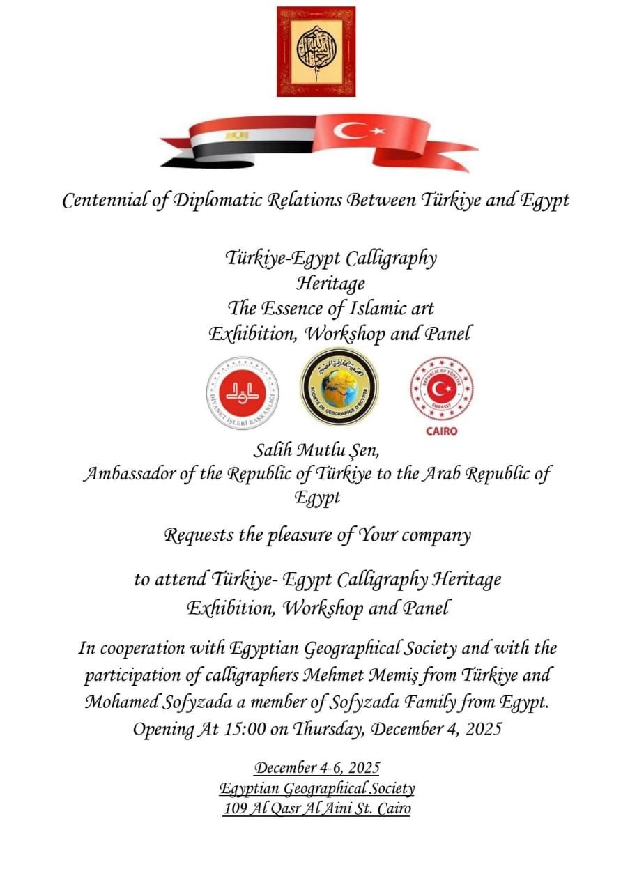 بالتعاون مع رئاسة الشؤون الدينية للجمهورية التركية، التي تمتلك أكبر مجموعة خط عربي في تركيا، و مجموعة من الخطاطين الاتراك والمصريين المرموقين، تم تنظيم معرضًا للخط في الجمعية الجغرافية المصرية بالقاهرة