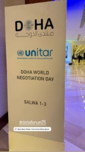 شاركت السيدة شيخة الكبيسي، عضو الأمانة العامة و الممثل الرسمي للمركز العربي الأوروبي لحقوق الإنسان والقانون الدولي في دولة قطر، في أعمال يوم الدوحة العالمي للمفاوضات 2025، الذي نظمه معهد الأمم المتحدة للتدريب والبحث (UNITAR) بالشراكة مع منتدى الدوحة ومركز مناظرات قطر، وذلك في نسخته الثانية التي جاءت هذا العام تحت شعار: