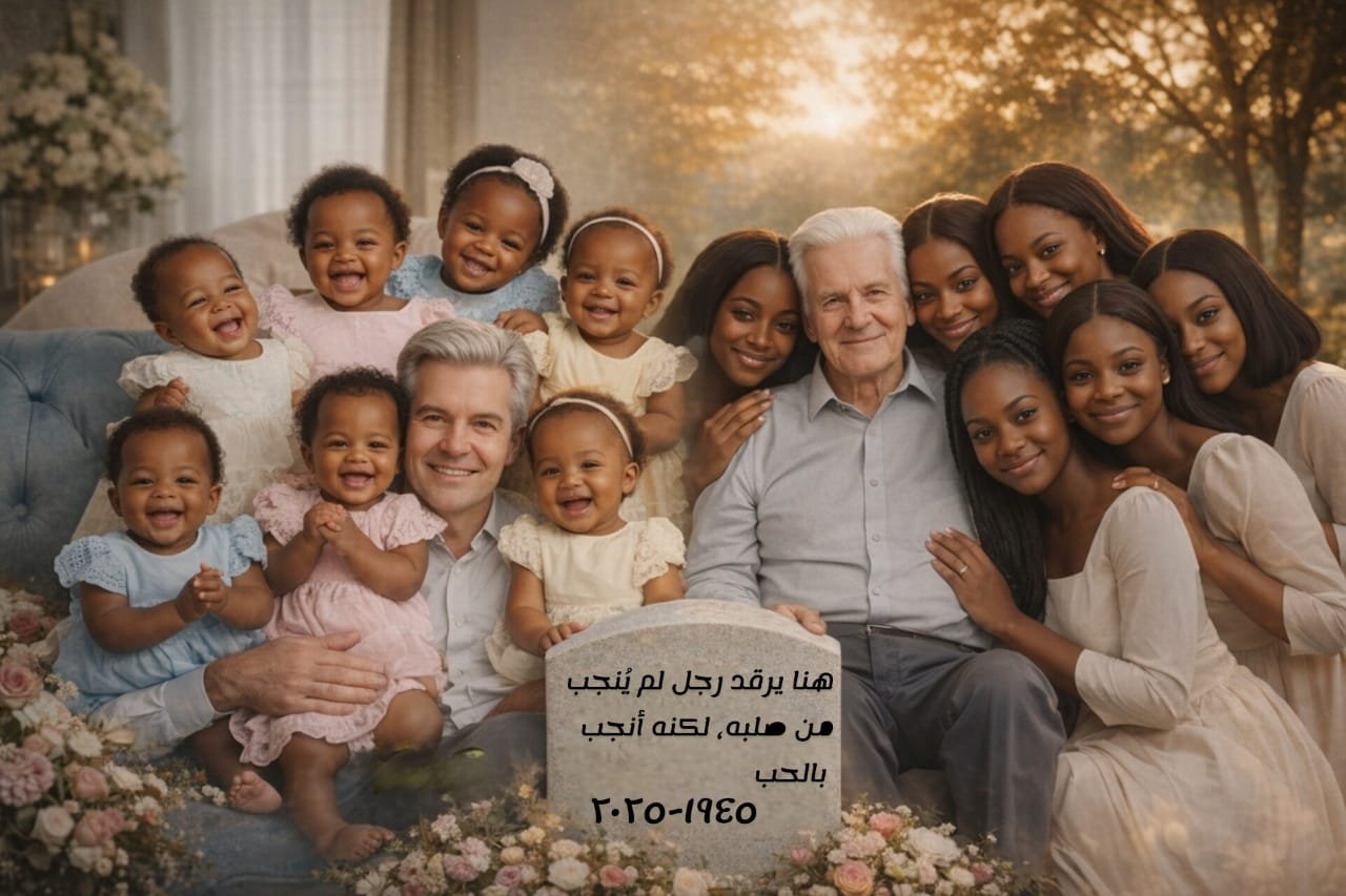 والآن *بعد ٤٦ سنة* ، في عام ٢٠٢٥م، جلس ريتشارد الأب الحاني على مقعد وثير وقد حفرت السنين خطوطها في وجهه وجسده الضعيف، لكن عينيه لا تزالان صافيتين. من حوله تسع نساء، لم يعدن فتيات بل نساء مشرقات واثقات بأنفسهن، قد أحطن به، أذرعهن على كتفيه، وجوههن قريبة، ابتساماتهن تتفتح كالزهور. تومض الكاميرات والعالم يتابع، وظهرت العناوين في الصحف: “في ١٩٧٩م شاب تبنى تسع فتيات سمراوات.. انظروا إليهن الآن”.
