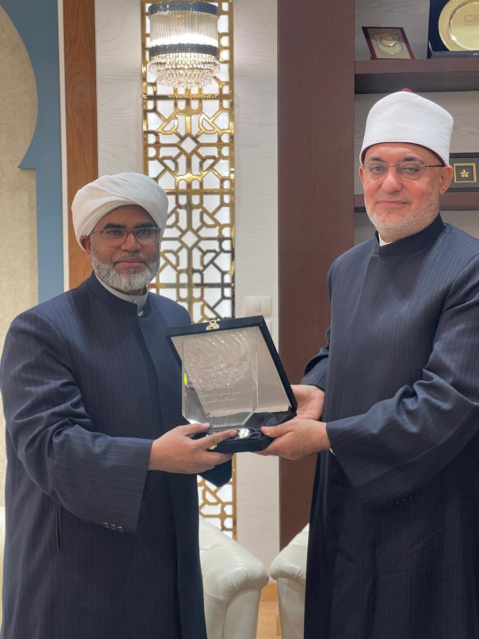 وفي ختام اللقاء، أعرب الأستاذ الدكتور فايد محمد سعيد عن بالغ شكره وتقديره لسماحة مفتي الديار المصرية على جهوده المخلصة، ورعايته المستمرة، وعنايته بقضايا المسلمين في أوروبا، كما قدّم لفضيلته درعًا تكريميًا تقديرًا لإسهاماته العلمية ودوره المؤسسي في خدمة الشأن الإسلامي.