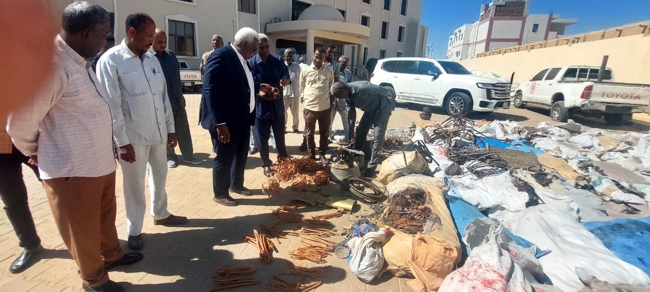 والي نهر النيل لدي وقوفه بجهاز المخابرات العامة بالولاية علي الضبطية الكبري من النحاس والمواد الاثرية يجدد الاشادة بيقظة وحرص الجهاز