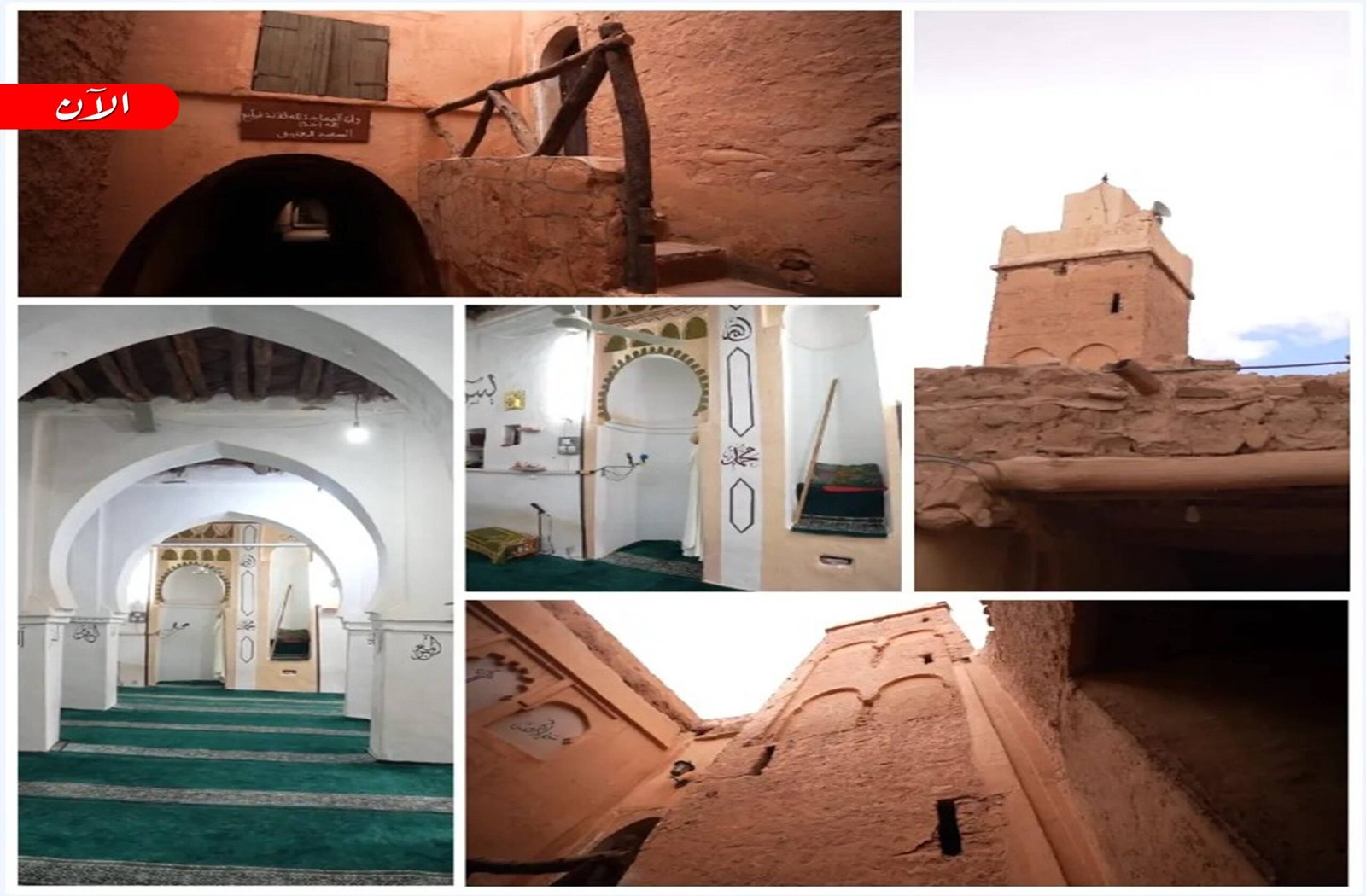 ويعتبر من أقدم المساجد في المنطقة وعلى المستوى الوطني, حيث يعود تأسيسه إلى بدايات الفتح الإسلامي, كما أنه يحتل مكانا هاما وسط القصر كموقع أساسي نظرا للدور الذي يلعبه كنقطة استقطاب, وهو محاط بالبناءات السكنية وعلى جهته الجنوبية تقع المدرسة القرآنية, وفقا للأستاذ والباحث في التراث المحلي وتاريخ القصور والأمين العام للجمعية الوطنية لتنمية السياحة القصورية والواحات, بلحاجي لغريسي.
