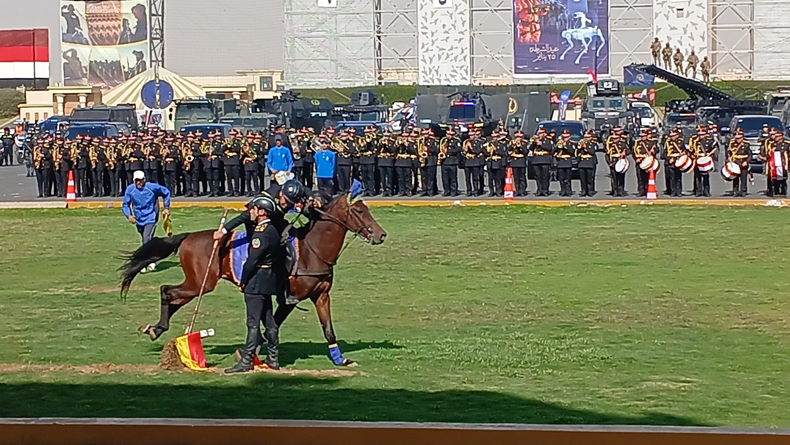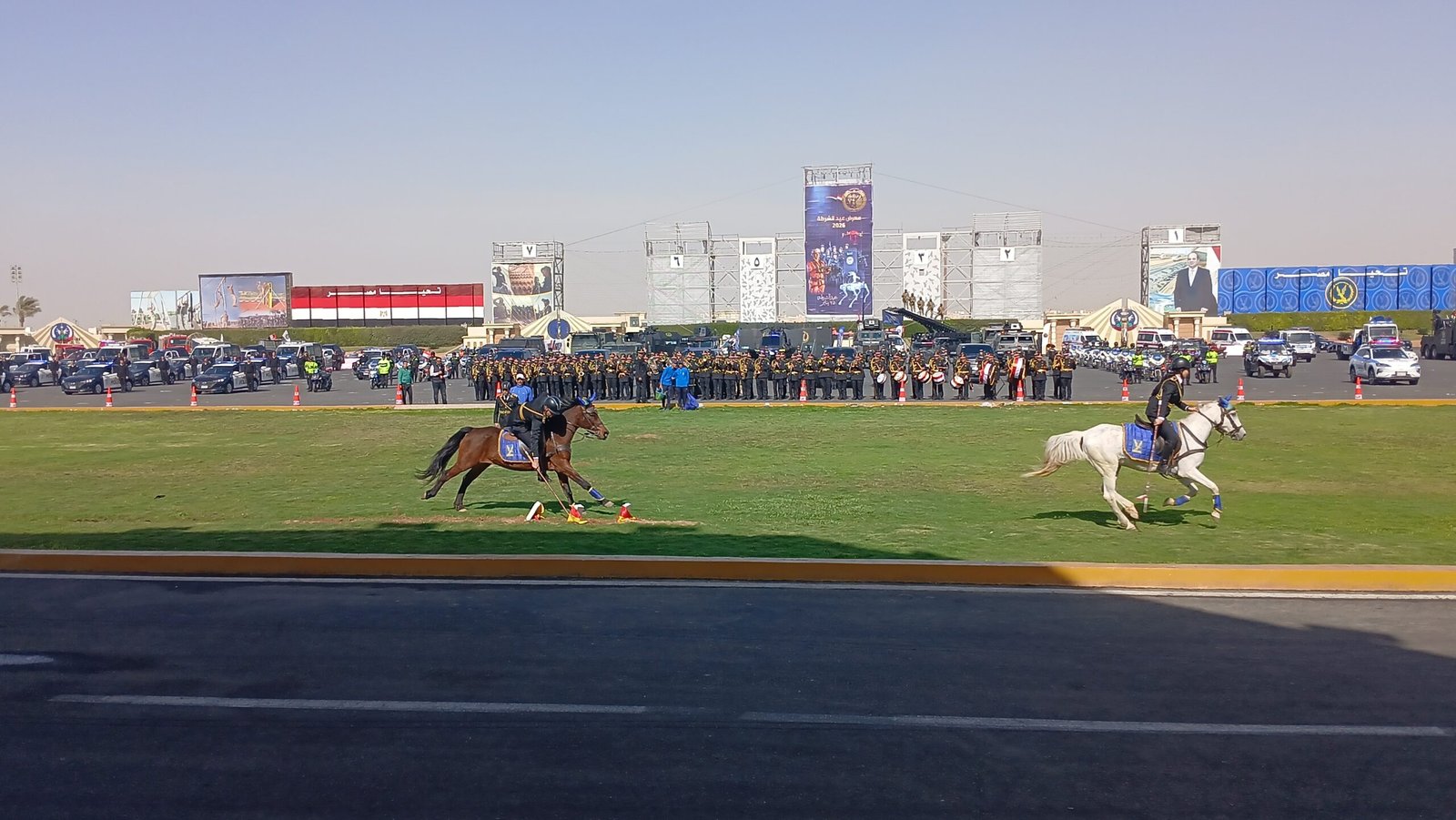 خيالة الشرطة فرسان طائرة.. النسور الساهرة يبهرون حضور معرض المعدات بأكاديمية الشرطة بسباقات الخيل (فيديو)