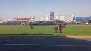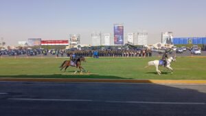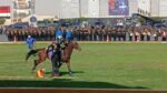 شملت استعراض الفروسية للضابطات والضباط، امام اصطفاف لمعدات الشرطة.
