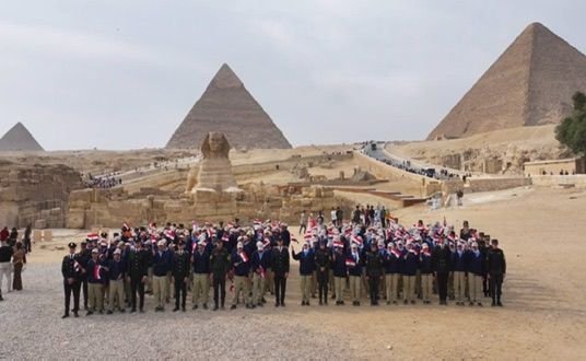  وتضمنت الزيارة جولة شباب وطلائع المناطق الحضارية الجديدة بالأهرامات حيث توجهوا لزيارة هذا الأثر الذى يُعد واحد من عجائب الدنيا ، وهنا يقف الزائر أمام معجزة خالدة تتحدى الزمن وتروى قصة عبقرية الإنسان المصرى عبر آلاف السنين .