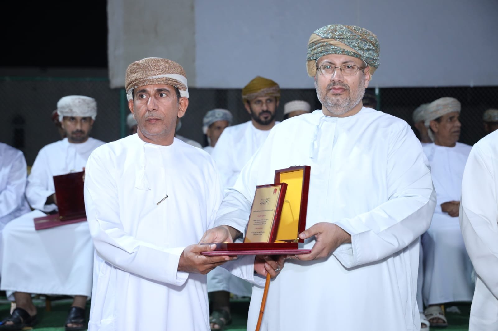 في ختام الحفل قام سعادة ياسر بن علي بن سلطان المبيحسي عضو مجلس الشورى ممثل ولاية بركاء وبمعية عبدالله بن محمد المالكي رئيس فريق اتحاد العقدة الرياضي الثقافي بتسليم كأس البطولة والجوائز لأصحاب المركزين الأول والثاني.