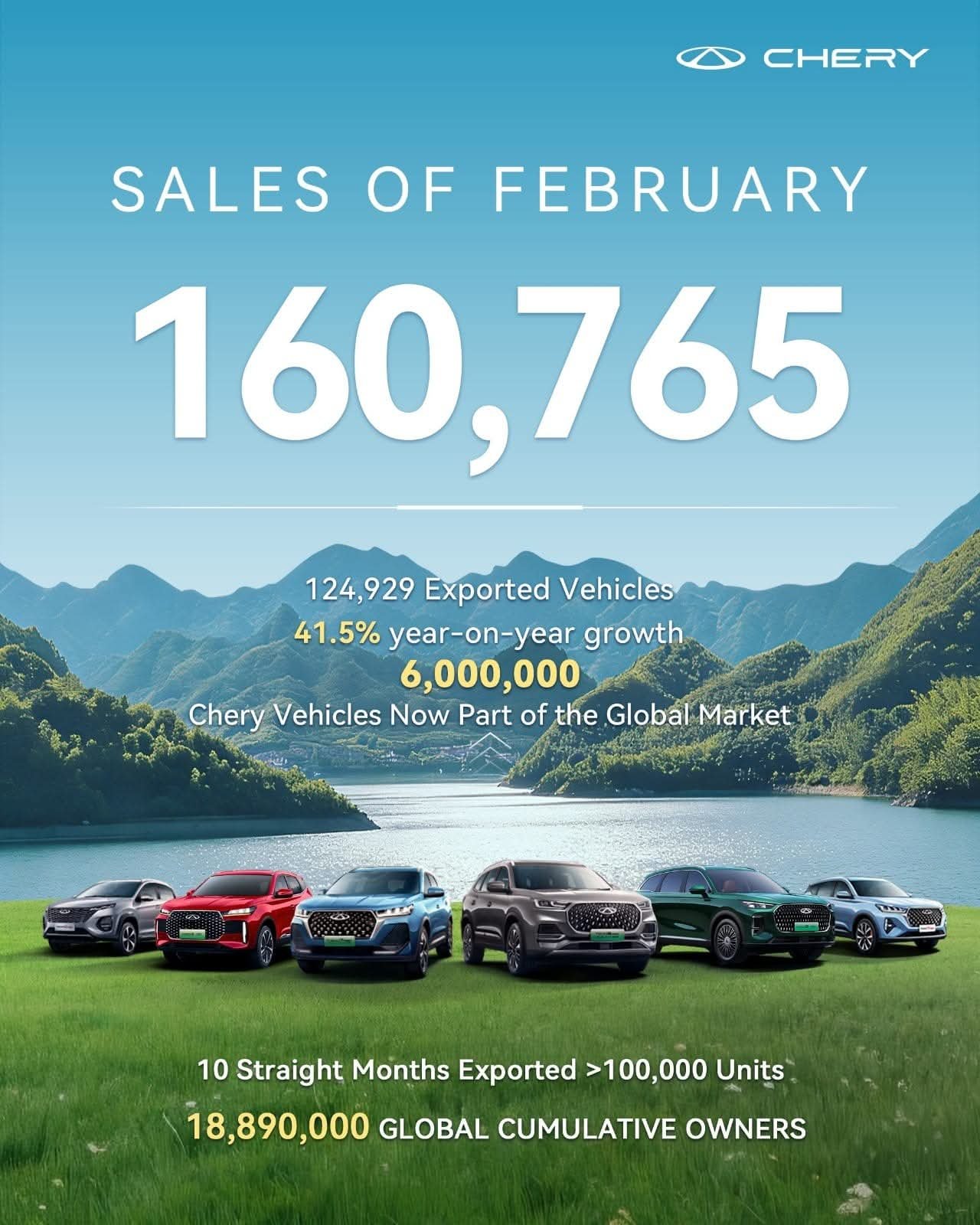 شيري تصبح أول علامة سيارات صينية تتجاوز مبيعاتها 6 ملايين وحدة في فبراير، مع نمو الصادرات بنسبة 41.5%.