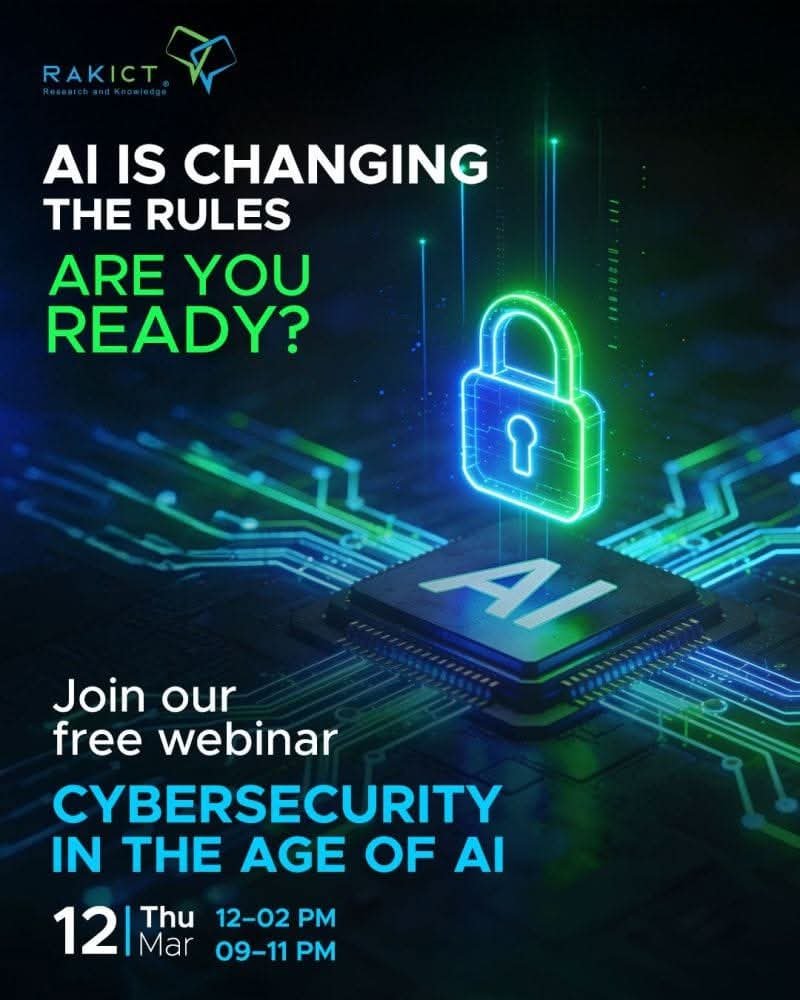 أعلنت شركة RAKICT، الرائدة في مجالات التدريب التقني والحلول الرقمية، عن إطلاق ندوة معرفية كبرى عبر الإنترنت تحت عنوان “الأمن السيبراني في عصر الذكاء الاصطناعي”، والتي تأتي استجابةً للتغيرات المتسارعة التي يفرضها التطور التكنولوجي على العالم الرقمي.