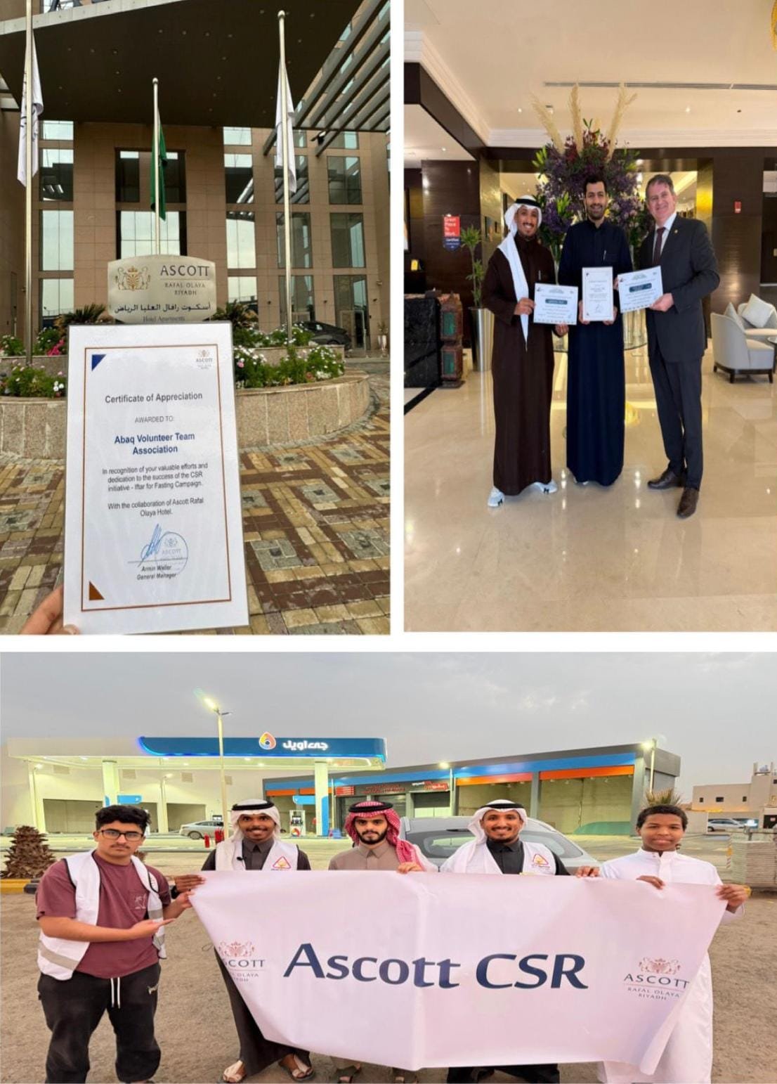 في إطار تعزيز الشراكات المجتمعية تم يوم الخميس 23 / 9 / 1447هـ تكريم فريق عبق التطوعي من قِبل إدارة فندق أسكوت رافال العليا تقديرًا لمشاركتهم في مبادرة إفطار صائم التي اقيمت بالتعاون مع جمعية بنيان للخدمات الاجتماعية وجمعية امان للوقاية من الحوادث حيث تم تجهيز وتغليف الوجبات يوم الاثنين 1447/9/20 في مقر.