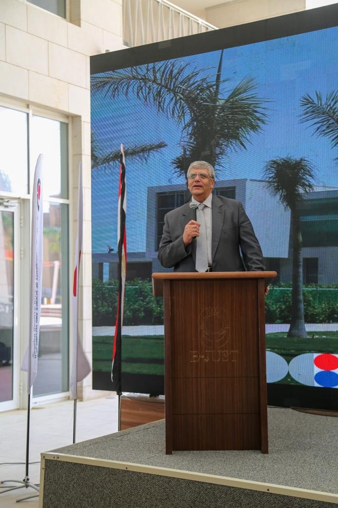 استعرض د.عدلى طبيعة الجامعة المصرية اليابانية موضحا انها أول جامعة بحثية أنشئت بالشراكة بين الحكومتين المصرية واليابانية وتعد أول جامعة تحمل اسم اليابان خارج حدودها، مشيرا الى ان الخطة الاستراتيجية للجامعة تعمل على 3 محاور هي: إتاحة تعليم جيد بمواصفات دولية، لتخريج شخص مؤهل للاستحواذ على فرص العمل المحلية والدولية، دعم كبير للاقتصاد المصري، ريادة الأعمال